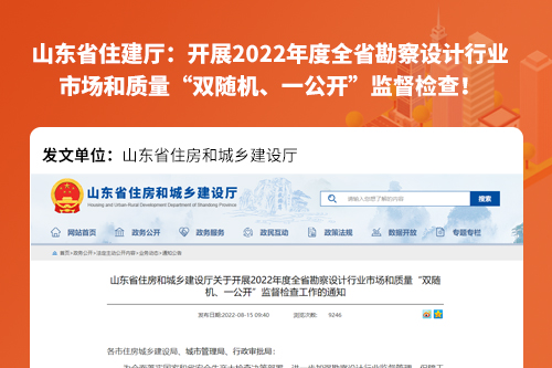 山东省住建厅:开展2022年度全省勘察设计行业市场和质量“双随机、一公开”监督检查!