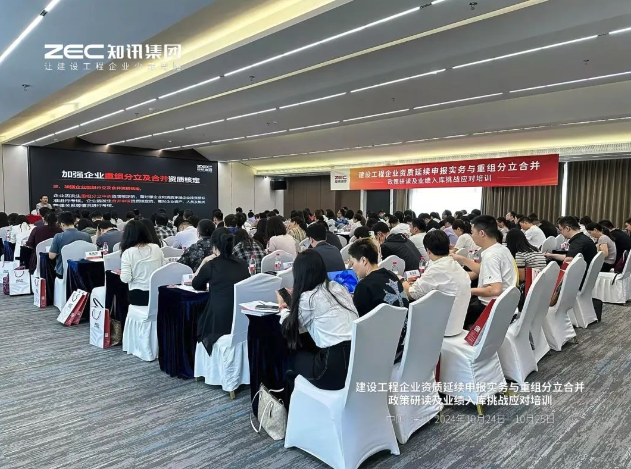 2024年10月24日至25日,知讯集团在深圳成功举办了主题为“建设工程企业资质延续申报实务与重组分立合并政策研讨及业绩入库挑战应对”的培训班。此次培训班旨在帮助相关企业深入理解最新政策要求,提升资质管理的实务操作能力,为企业顺利应对政策变化提供支持。