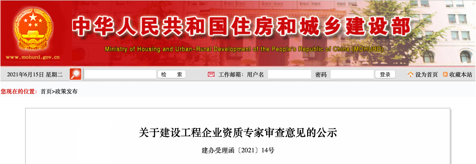 2021-06-17 14:40:55按照《行政许可法》及有关建设工程企业资质管理规定,我部对近期申请建设工程企业资质的申报材料组织了专家审查,现将专家审查意见在住房和城乡建设部门户网站予以公示