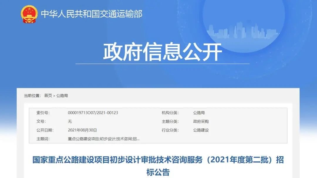 国家重点公路建设项目初步设计审批技术咨询服务(2021年度第二批)招标公告